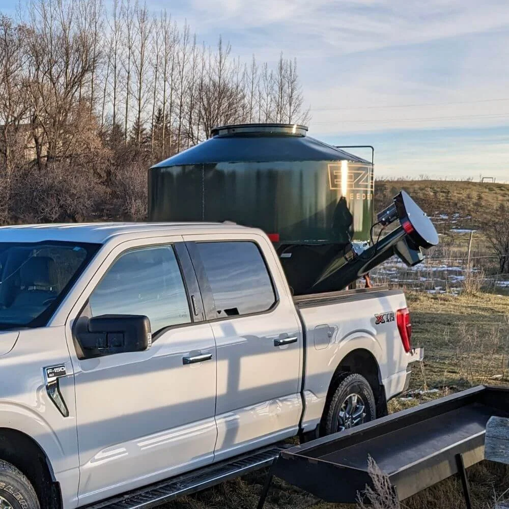 Heading out to feed your animals with your truck is a breeze with EZE-FEEDER. The skid frame is sized to fit most truck beds and we’ve added built in brackets for your tie downs so set up is simple.
